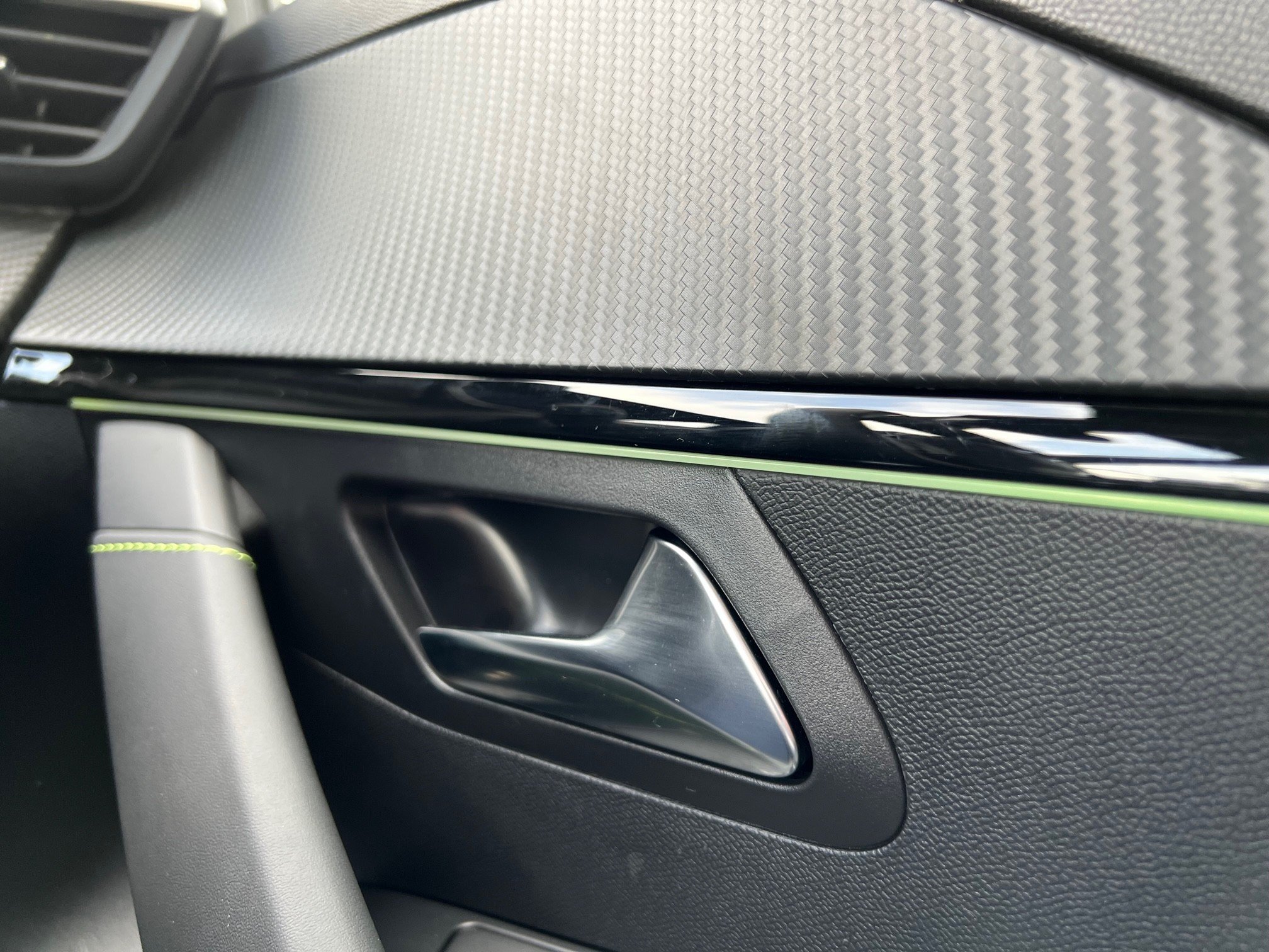 - Adamite Green Contrast Stitching on Front and Rear Door Armrests - Front Centre Console and Dashboard Facia